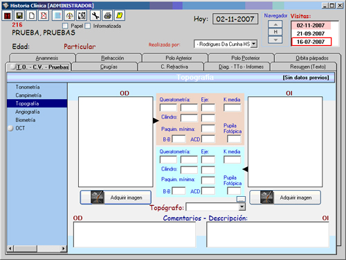 El programa nos permite recoger diferentes datos del paciente por fecha o bien por fecha de visita. Teniendo así la posibilidad de ver de forma sencilla la evolución del paciente.